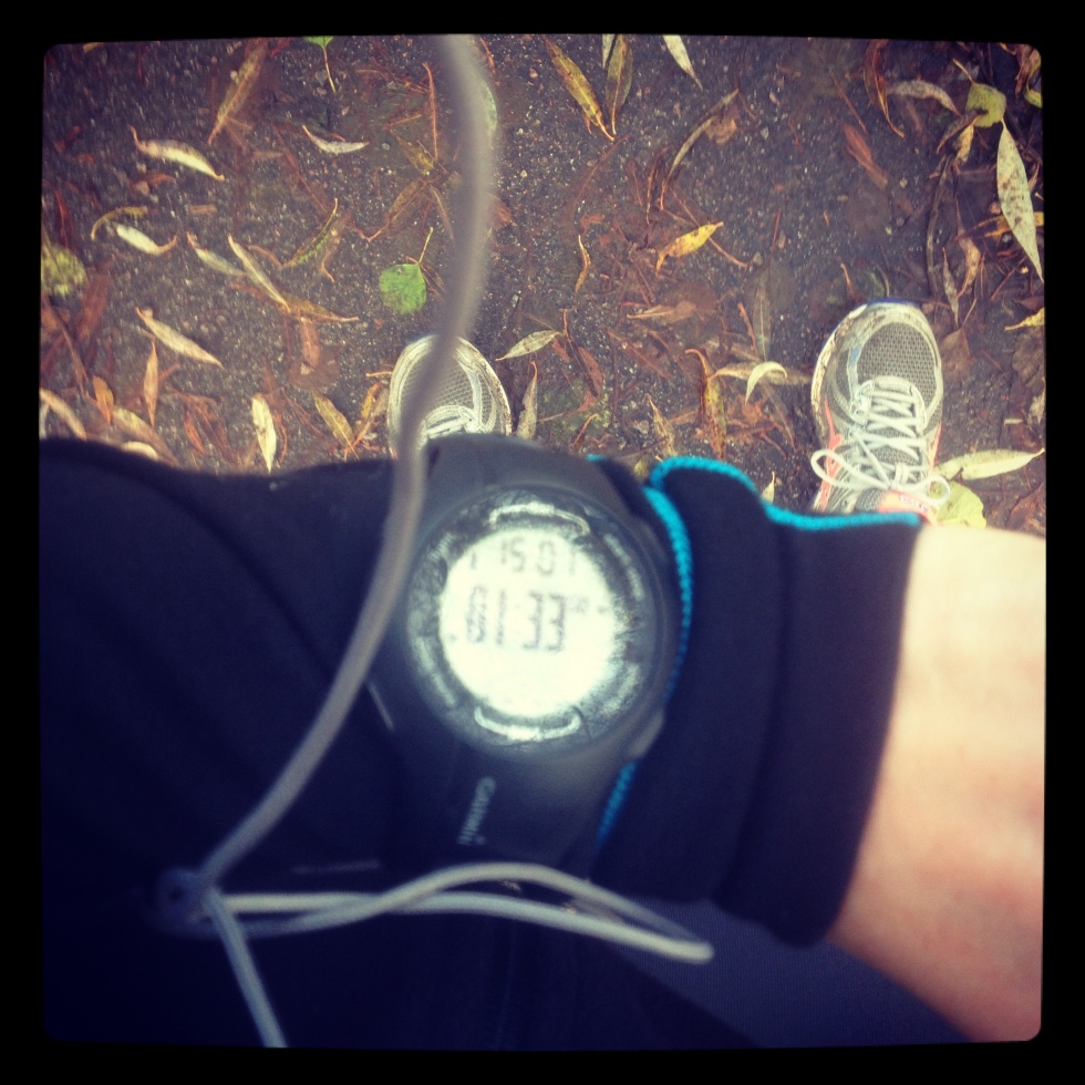 I was very suspicious when I went out, wondering if it would rain or not. Whatsoever. My shoes and my tights are as grey as the weather. I decided to take it easy and to run as least 15K. The goal was to have a low pulse during the whole pass and to make my legs work during a longer period as last week. I am deeply convinced that to be fast at 10K, you need to train you mentally at running 15K at least almost at the speed you want to run the 10K. Maybe I am wrong, but it helps me in my head. And then, if by mistake I would run 21K on a normally sunday, it would be a good thing to be proud of.