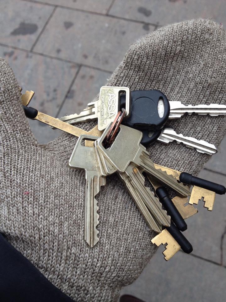 I am so sorry for the absence of updates the past few days. It has been very hektik but we are all happy. On Friday, we got up at 6 oclock. One hour later, a whole army of moving people came into our appartment and we went out downtown to eat breakfast. We were both pretty excited about what would come. At 10, we got to pick up the keys of our new appartment, and at the same time to have a big hole at the bank. We are not owning our appartment yet, but a loan and it will take years to pay it back. It felt like whatever on friday, when I took this picture:
