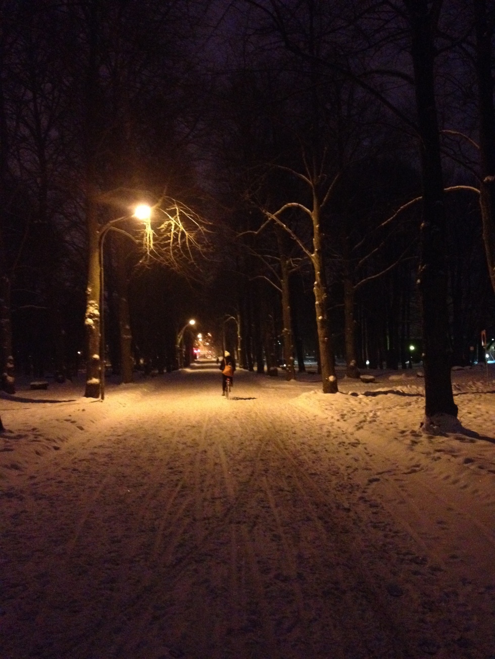 One of the new routines is how I take my little self to work. I walked 2 days and took the bus 2 days so far. It takes me 30 minutes at least to go to work and with the snow from these days, this may be counted like a real training pass. The positiv thing is that I get to go through a magestic place: a big allée without any car traffic. See by yourself how it looked tonight when I walked home:
