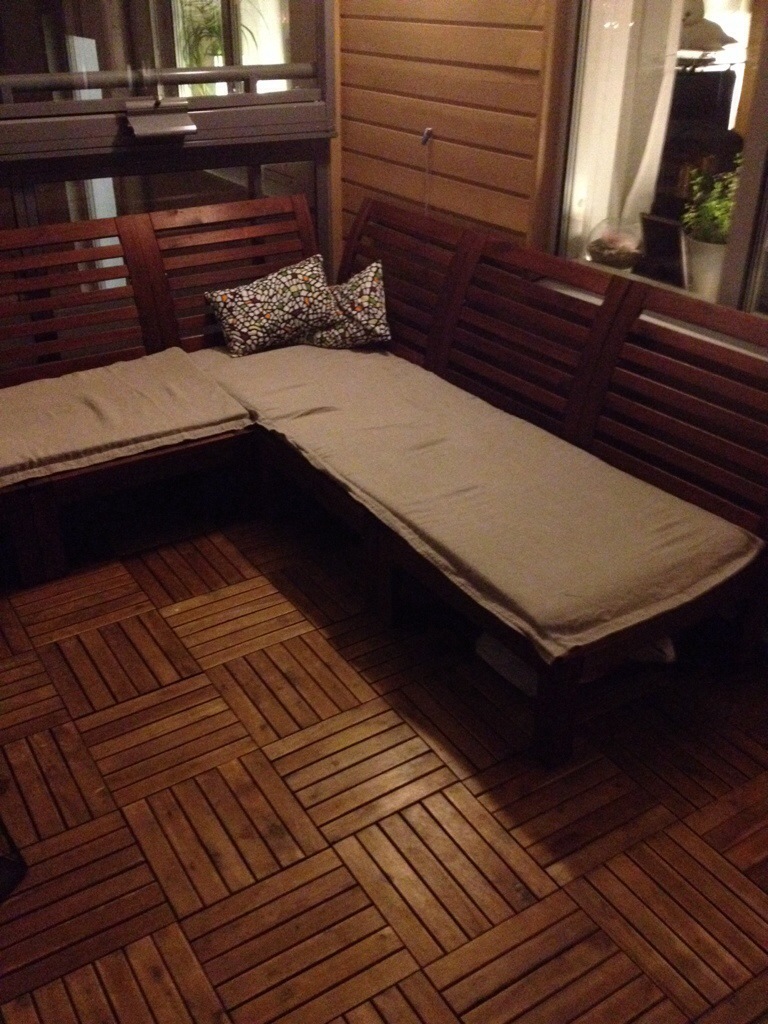 I used a piece of lin that we had at home, bought some fill-in material for the inside and if you don’t count my time to make it, it costed one fourth of the price of IKEA things.