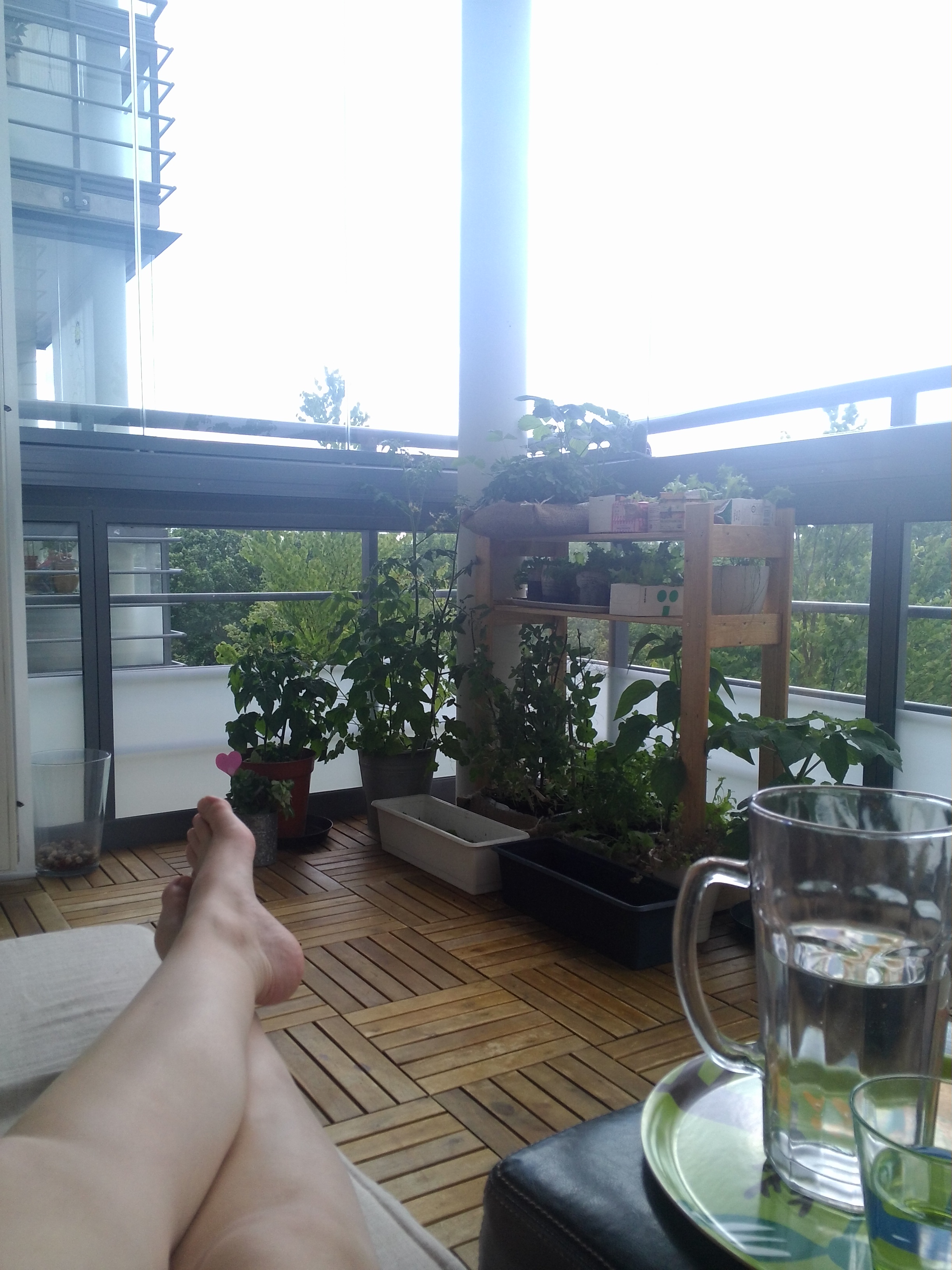 We are now enjoying our balcony, reading and drinking fresh water. The weather seems to turn into rainy weather but i want it to wait tomorrow, when we will be working again after a long weekend.