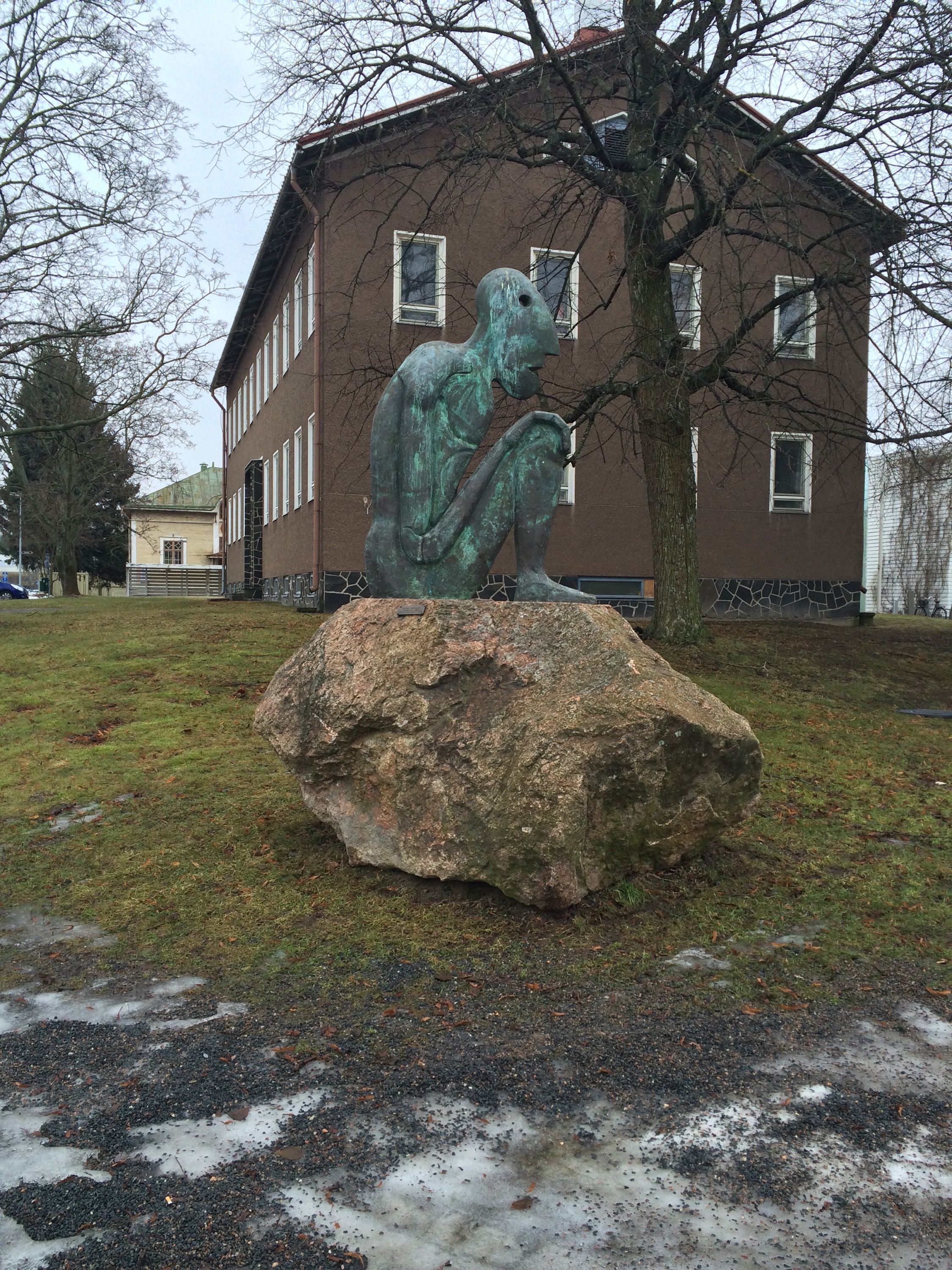 We drove about 1h30 and came to our friends place in Rauma. It was pretty early so we began with a good breakfast. Then, before to fall in a sleep coma, we went downtown for a walk and a visit of the city. We met this sculpture on our way: