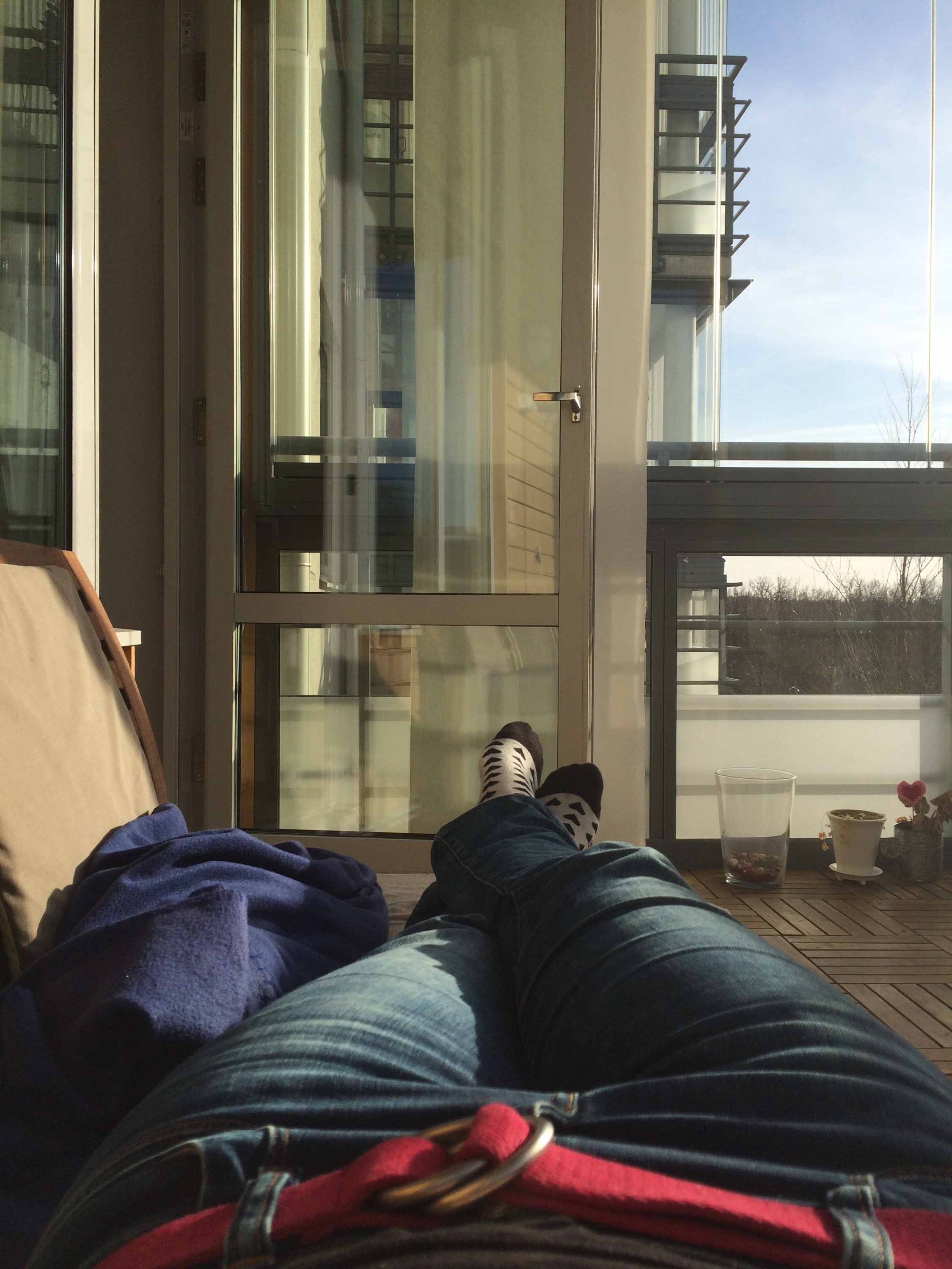 After that I had a delicious lunch and a glas of wine. This last determined the rest of the afternoon: we are both lying on our sunny balcony sofa half asleep and whole happy. Let’s see what the evening will give me!