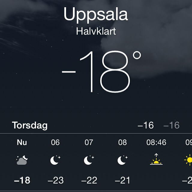 Ew you kidding? It was -23 degrees yesterday morning when we walked to work, and not so much warmer for the rest of the day. At this point, my eyes cry, my “nose liquids” freeze inside the nose and the air you breathe falls on you with small cristals and at the end, you’re covered of them.
