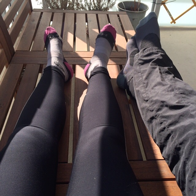 first time ever, M and I are sitting on our balcony and not freezing and even enjoying the sun! The best part of it is that we come back from a run together. This is wonderful.