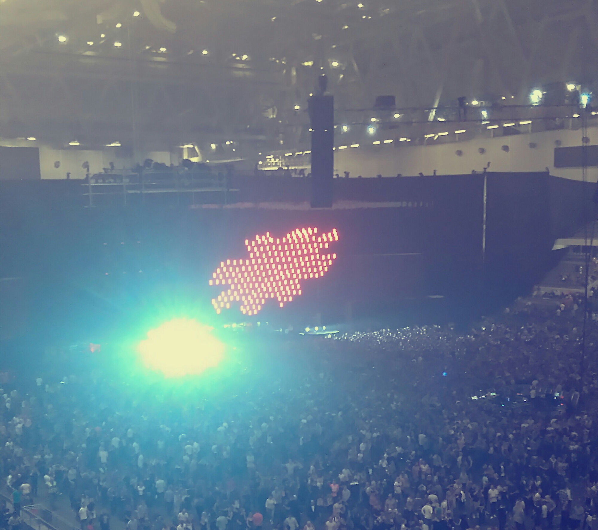 The concert tonight wad good, nice mix between old and new songs. The band showed a lots of energy and the public was responding. The bad thing was the bad sound with kind of an eccho. That did not work good for the rapping parts, the more detailled playing and the talking. I don’t know if it was the arena or our places though.