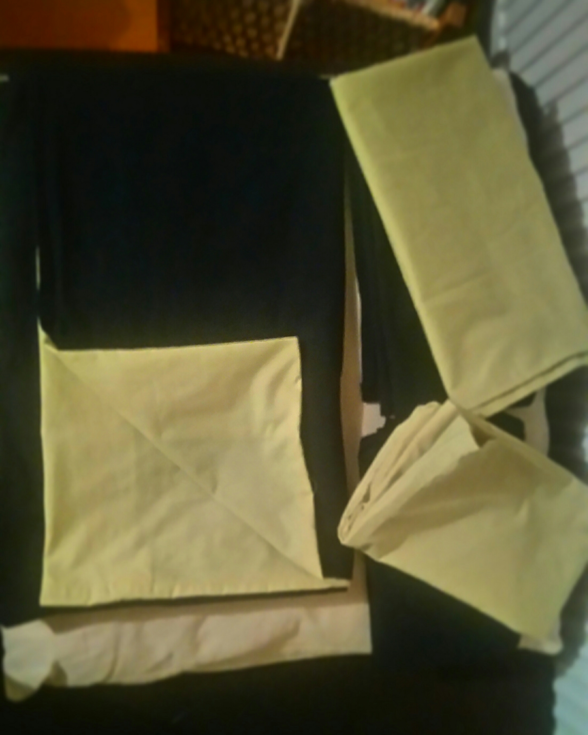 So I made it today: from two big bed sheets, I sewed one blanket cover, 2 pillow covers and 2 bed sheets.