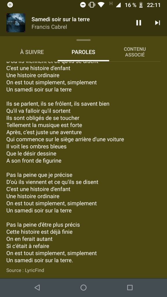 When the next song on the playlist goes on, I get even more sentimental. Samedi soir sur la terre. How many times did I and my friends listen to it, trying to picture the role perfectly and above all, play it perfectly, at this bad disco, le sirocco. How many girls went home disappointed (or raped)? What was the limit between the will to fit in a do g everyone was listening to and one’s real needs to explore love and life? This text is resuming the whole well: it’s only a normal Saturday night.